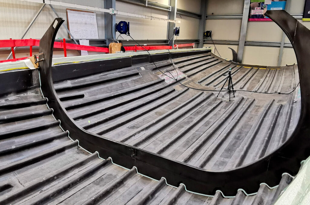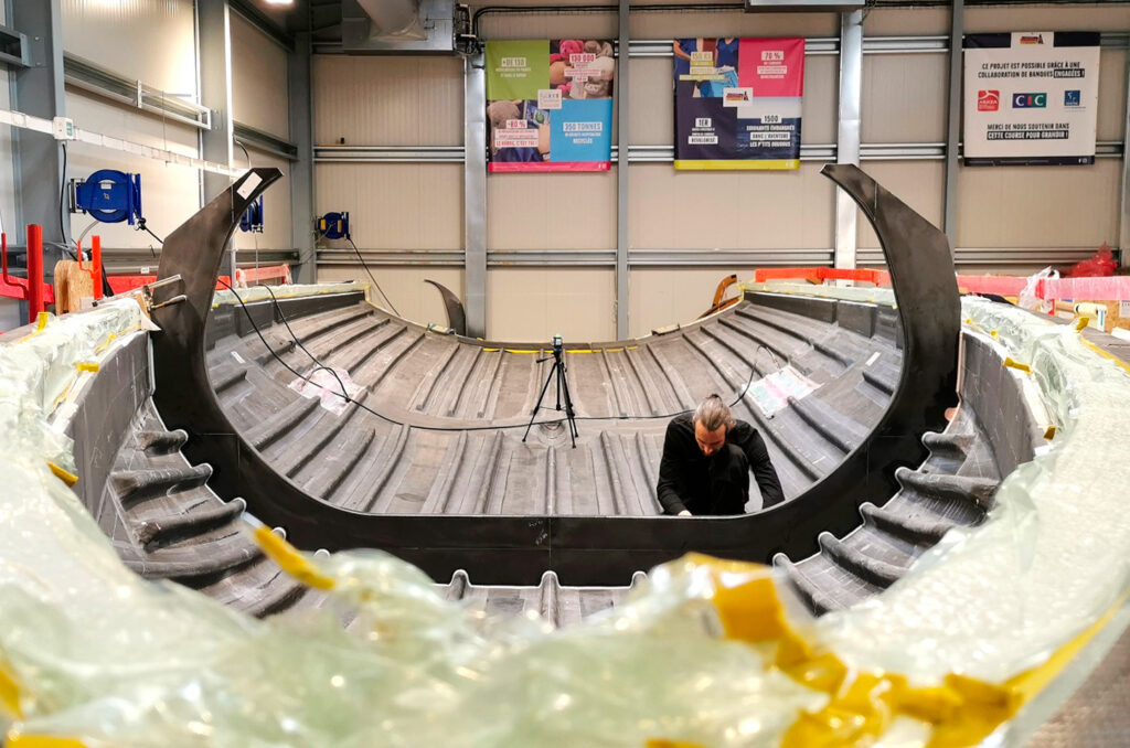 En effet, la coque et ses renforts ont été intégralement cuits. La très grande majorité des cloisons et certaines pièces de structure sont terminées et en cours d’usinage.